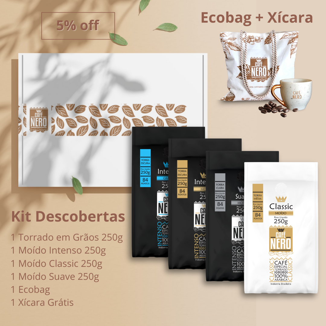 Nosso Kit Café Presenteável Descobertas, é a escolha ideal para surpreender alguém especial. Proporciona uma experiência completa de sabores, pois acompanha 1 unidade de cada linha. Com grãos selecionados, elegância em cada detalhe e sabor inconfundível, é a experiência que transforma qualquer momento em algo único. Seja para comemorar ou apenas para agradar, este kit vai conquistar corações! 🤎